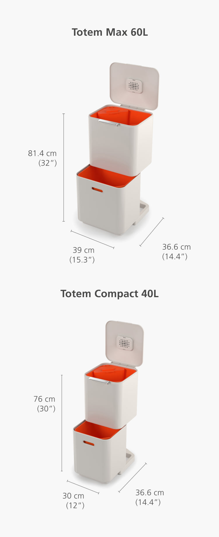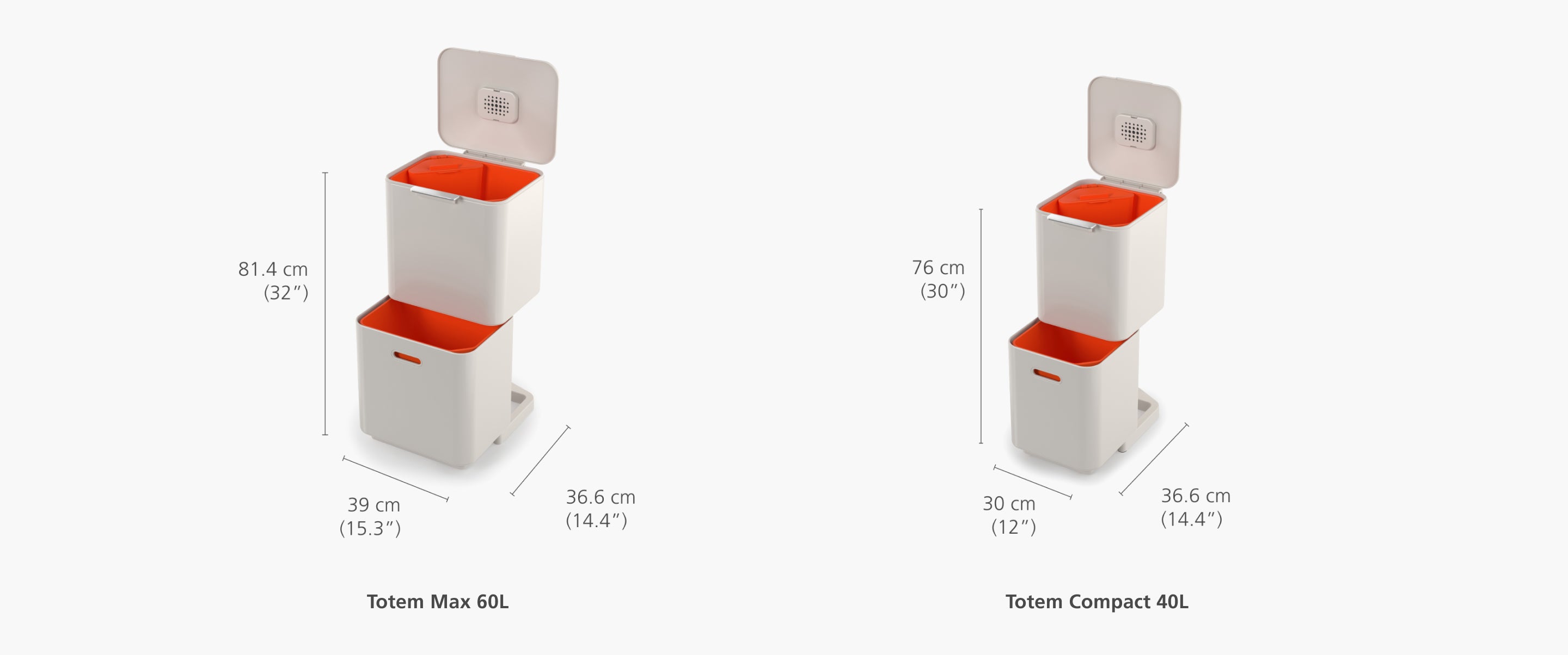 Our range of bins offers large capacities in smaller footprints, because we know that floor space is precious in the home. Each of our household bins boasts special features, whether that’s offering separate compartments in one tidy tower (Totem); the ability to compress rubbish to help reduce trips to the wheelie bin (Titan); or bins which handily store their own liners (Arc™).