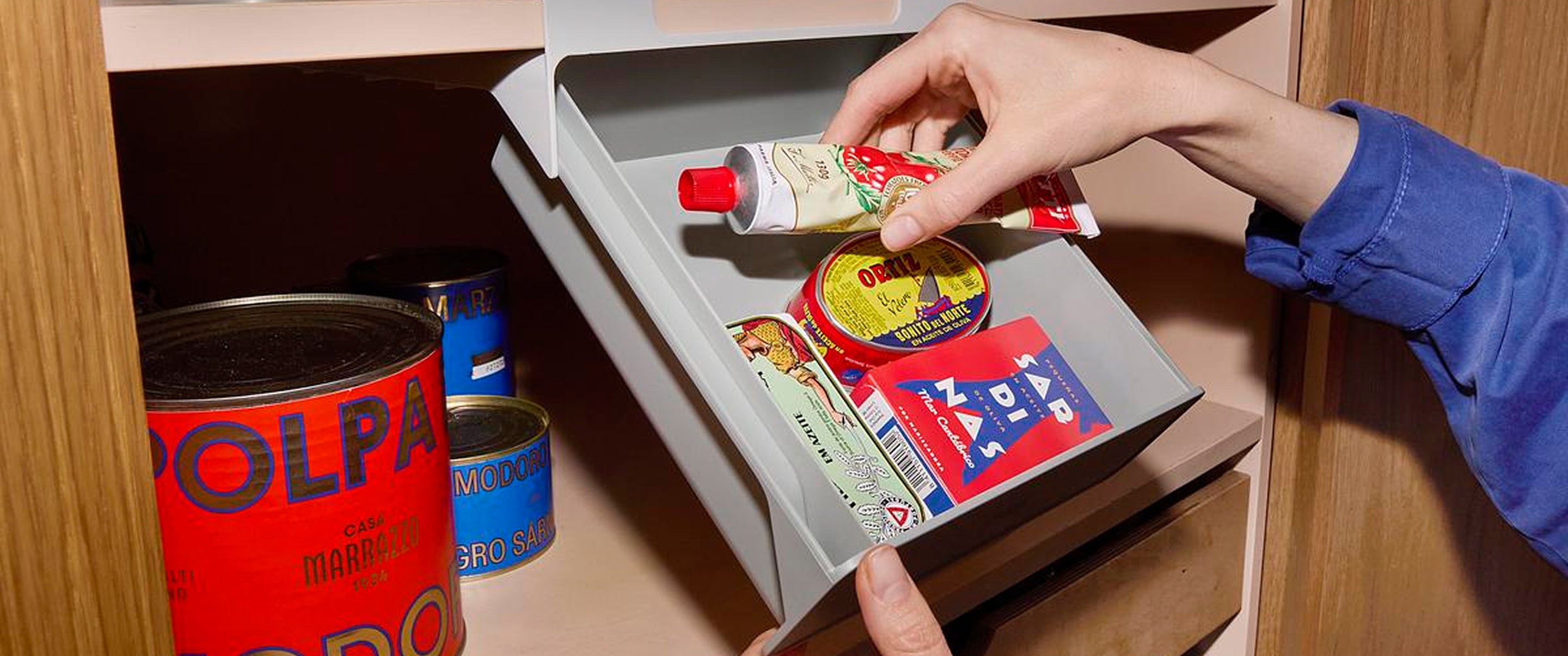 - Use tiered organisers for canned goods and spices.