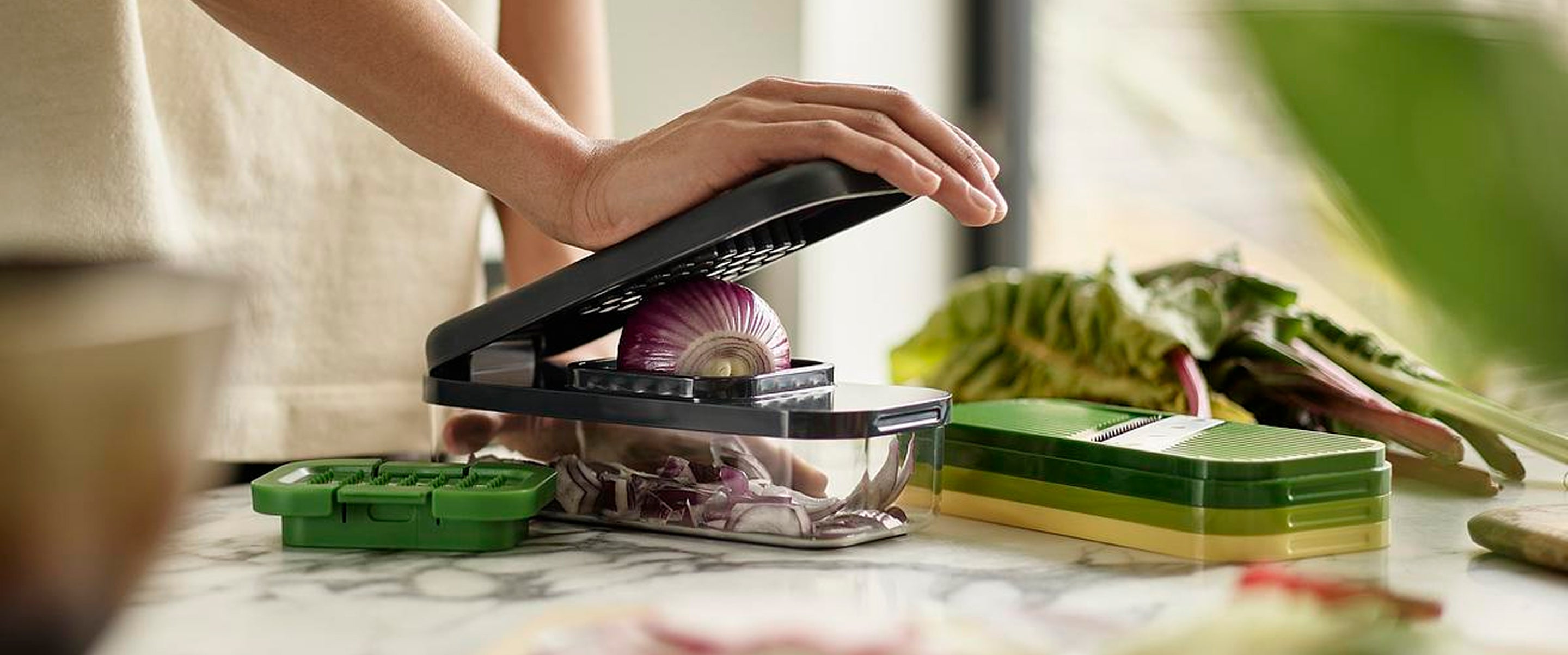 Items like the 4-Piece Compact Grater & Slicer serve multiple functions, so you’ll need fewer tools cluttering up the space.